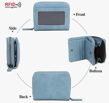 Cartera de viaje con bloqueo RFID de cuero genuino, tarjetero corto, tarjetero de identificación, billetera