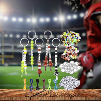 Kit de fabricación de llaveros DIY, cuentas de letras, llavero de cuentas de pelota deportiva de fútbol colorido para hacer joyas, Juguetes